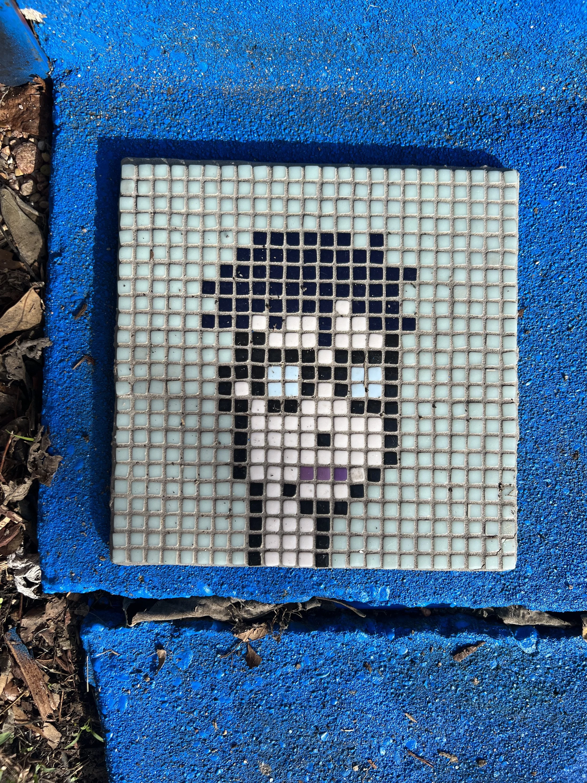 Every part of prepping for this installation was an approximation. Getting accurate measurements of such shapes would require much math, and I do not math, much. Thankfully rug tufting is fairly forgiving. I used newsprint to make paper patterns of the tree's base and hollows, cutting them into pieces that I could then transfer to the primary tufting cloth once stretched onto my frame. Each feather was hand-tufted and cut out after gluing the edges. Taking into account the installation would live outdoors, I used waterproof latex glues for only the edges of the rug pieces. I wanted to allow rain to be able to go through the material so that 1.) The tree and ground would not be starved of water, and 2.) so that the water would not pool and mildew in the rug. This decision, though, had a very exciting and special surprise for me! After being installed for about a week and a half, and the rain we have thankfully had during that interim, I found small grass shoots had begun to grow up through the rug! Nature finds a way. I have read covering trees with fiber during the winter months helps provide places for bugs to burrow and bed, rather than into the tree, protecting the tree. Though this tree seems to be not doing so well, I hope that my piece will provide it with some comfort in its last days.